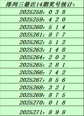 上期归来:陈设三第2025271期奖号:898。和值25,跨度1。