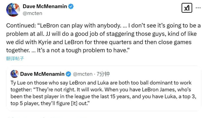 洛城德比又来了体育集锦,快船队在主场迎战湖东谈主队。快船长老师泰伦-卢在采访中谈到了詹姆斯和东契奇的勾通,认为他们偶然很好地共存。外界对此有不同的见地,尤其是前NBA球员保罗-皮尔斯的质疑,但湖东谈主队处治层依然充满信心,期待詹姆斯能在退役前培养东契奇成为超等巨星。 泰伦-卢还提到,詹姆斯不错和任何球员一谈打球,这种活泼性是他干事生计的一大上风。他的能力不单是体当今得分上,更在于他偶然转换队友的发达。东契奇的立场与詹姆斯有些不同,但这并不虞味着他们不可共存。相背,他们的不同可能会让球队的弥留愈加各样化。这么的想路让东谈主认为,快船队在面对湖东谈主队时,可能会有出东谈主猜想的发达。